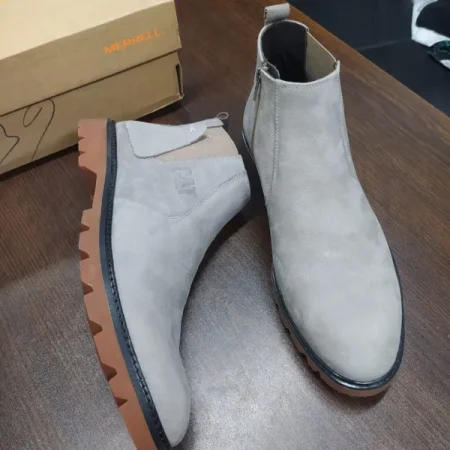 3,600.00৳Original price was: 3,600.00৳ .2,399.00৳ Current price is: 2,399.00৳ .These CAT ankle boots blend the rugged durability of a work boot with the sleek silhouette of a Chelsea boot. Crafted from high-quality grey nubuck leather, they feature a unique hybrid closure system for both style and easy wear.