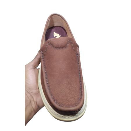 1,990.00৳Original price was: 1,990.00৳ .1,550.00৳ Current price is: 1,550.00৳ .Product Overview Material: Premium textured grain leather upper for a rich, natural look. Style: Classic slip-on moc-toe design with visible contrast stitching. Color: Deep Chestnut Brown with a subtle vintage finish on the seams. Sole: Durable, lightweight synthetic cream-colored outsole with enhanced grip patterns for all-day stability. Key Features Hand-Stitched […]