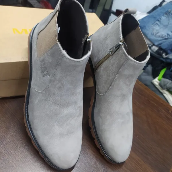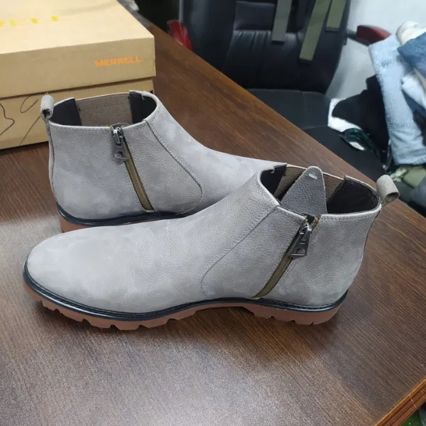 Closure: Dual-entry design featuring a classic elastic side gusset (Chelsea style) and a functional metallic side zipper for a secure, adjustable fit.