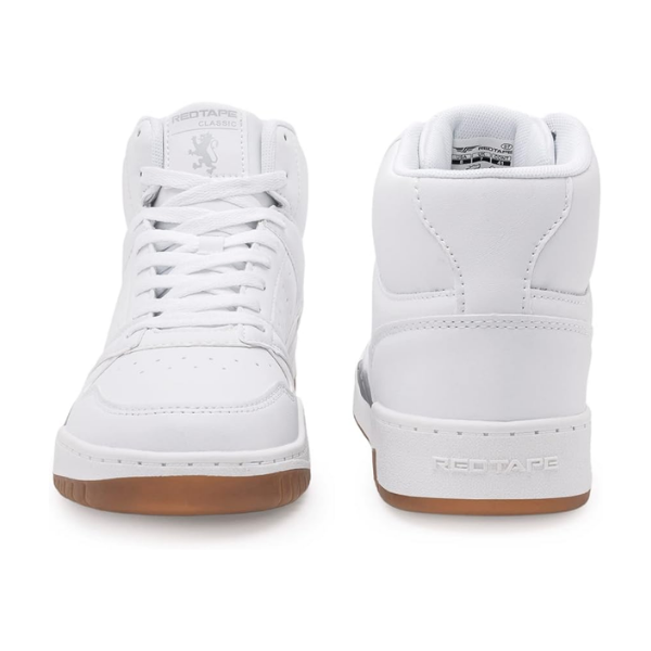 RedTape Men’s High-Top Sneakers featuring a classic white design and a durable gum-colored TPR sole. Crafted with a premium Polyurethane (PU) outer material and a comfortable synthetic lining, these lace-up sneakers offer the perfect blend of retro heritage and modern durability. Designed with a round toe and cushioned footbed for all-day comfort, they are the ideal wardrobe staple for casual outings, errands, or street-style looks.