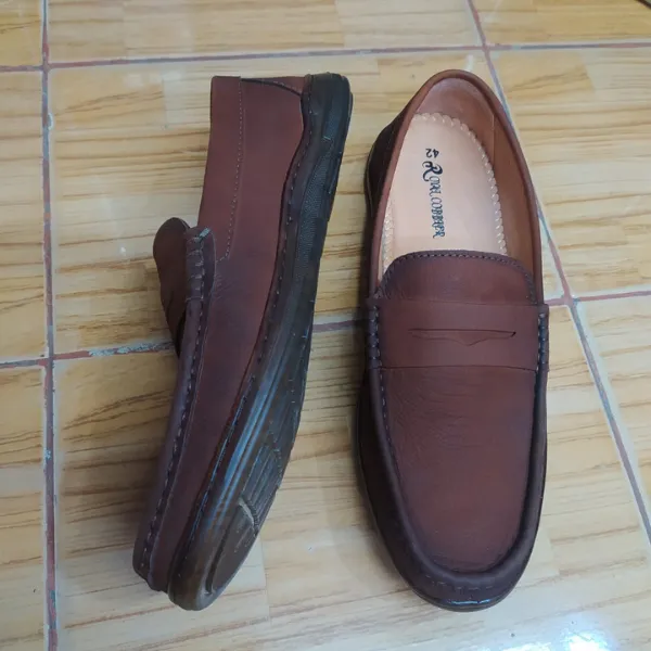 These handcrafted penny loafers from Royal Cobbler blend timeless sophistication with modern comfort. Featuring a rich, matte mocha finish and a versatile silhouette, they are designed to transition seamlessly from a day at the office to a casual evening out.